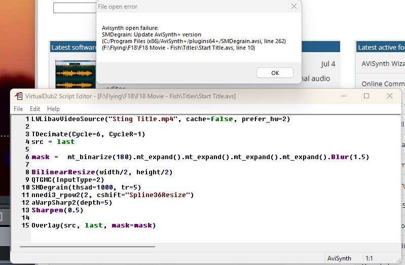 Edit: looking closely at that line 262, it looks like it wants AVISynth+ 373. Is there such as thing? The latest version available on Github is 372.