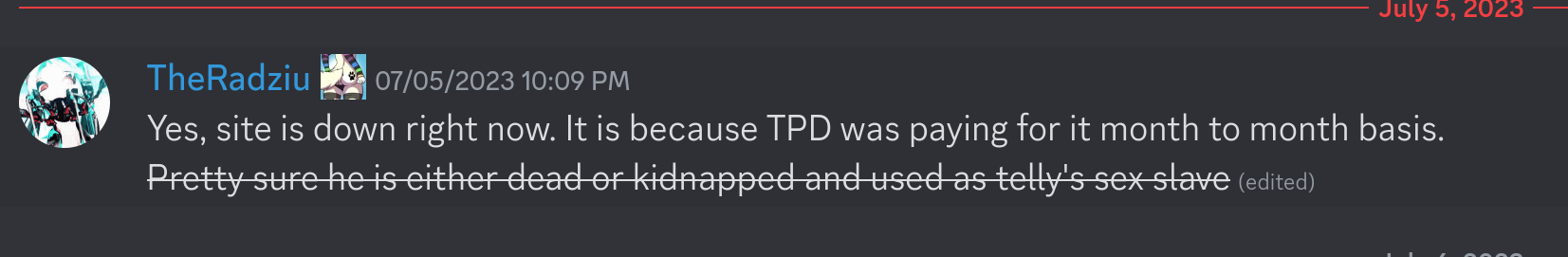 And stopped making the server payments? Makes no sense to me. Unless he's a drama queen?
