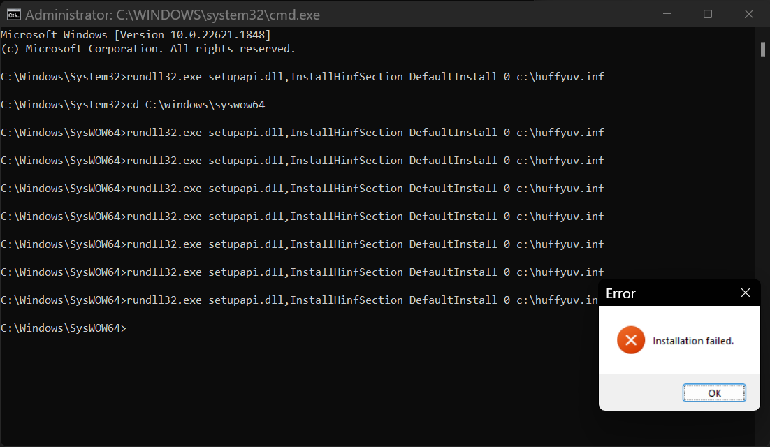If anyone has any ideas on how to fix it please share. I'd love to get this working. I already have my huffyuv.dll in System32 and SYSWOW64 and it's still not getting detected by 32-bit Avisynth.