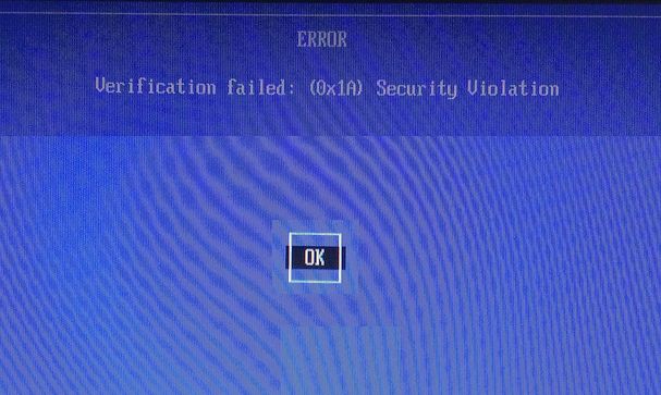 2. Disable secureboot in UEFI.