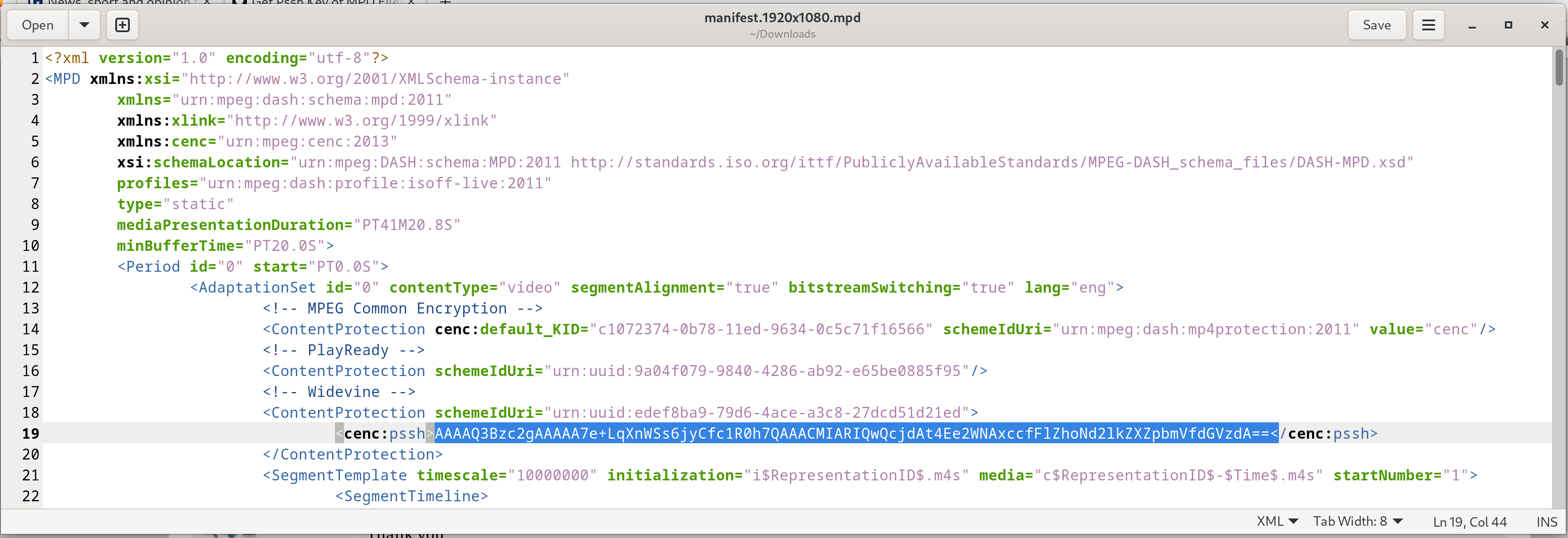 You can find it by simply searching for PSSH within the MPD file.Code:AAAAQ3Bzc2gAAAAA7e+LqXnWSs6jyCfc1R0h7QAAACMIARIQwQcjdAt4Ee2WNAxccfFlZhoNd2lkZXZpbmVfdGVzdA==