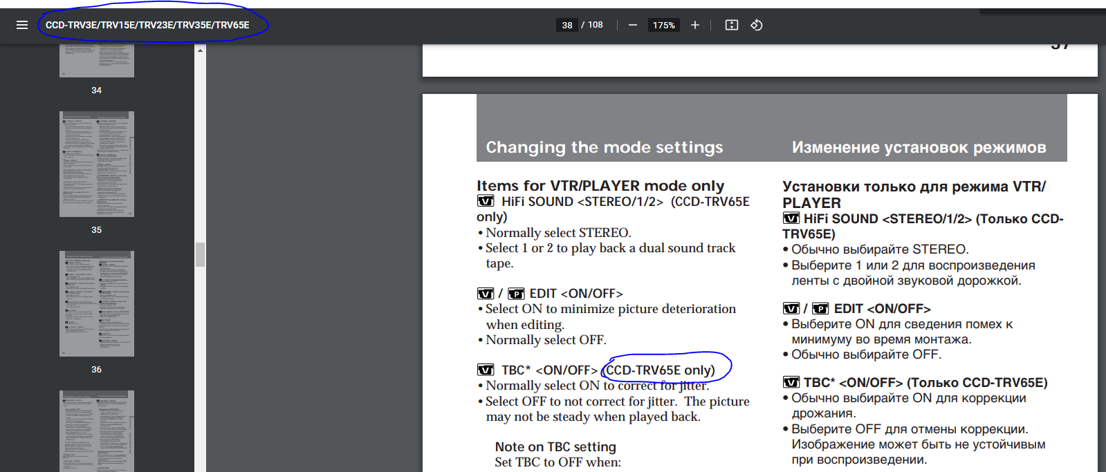 I can't find both in the settings, i actually went back and looked at the manual and i see that this manual is for a few models - CCD-TRV3E/TRV15E/TRV23E/TRV35E/TRV65E. Not just the TRV23E. And in the TBC section it says "TRV65E only". I can't tell if they mean it's only the option to turn it on/off, or the existence/absence of TBC.