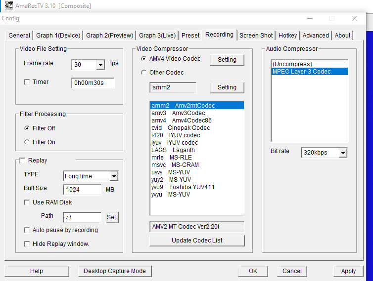 The issue is, i can capture the video with AMV4/LAGS codecs which are apparently not common formats and the main point of the capturing i'm doing is to be able to watch it anywhere with friends and family(TV, PC, etc). What do i need to do in order to make it use a more common codec? -