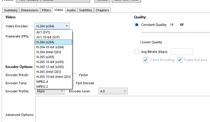 I'm confused about the encoding options in Handbrake. I did a 50 min capture in AmarectV which came to 35GB in size. I encoded the file in Handbrake, set format to MP4, dimensions set at 720x576 (although I'm confused about the "scaling and resolution limit" setting"). Video encoder I used H.264 which I normally use anyway, framerate at Constant Framerate. For quality i normally set it at 22 but I decided to set it at 18 this time as according to Handbrake suggested values are 18-20 for standard definition sources and 20-23 for high definintion sources. As I just wanted standard definintion I set it at 18, yet the outputted file was 5GB, when I normally set to 22 it's around 3.24GB. Why am I getting a higher file size when I set it at 18?. I spent 1 hr 10 mins encoding the file for the file size to be larger. I was going to use OBS again instead, but I noticed there was a kind of lagging with the video and audio. I did change to encoder options to make the encoding faster, so maybe that's why it was larger, but I wasn't prpared to wait another 2 hours to encode the file. I have encoded much faster in Adobe Premiere on my older Toshiba laptop. I was going to try KDenlive but I can't understand the video settings as it doesn't seem easy to use.