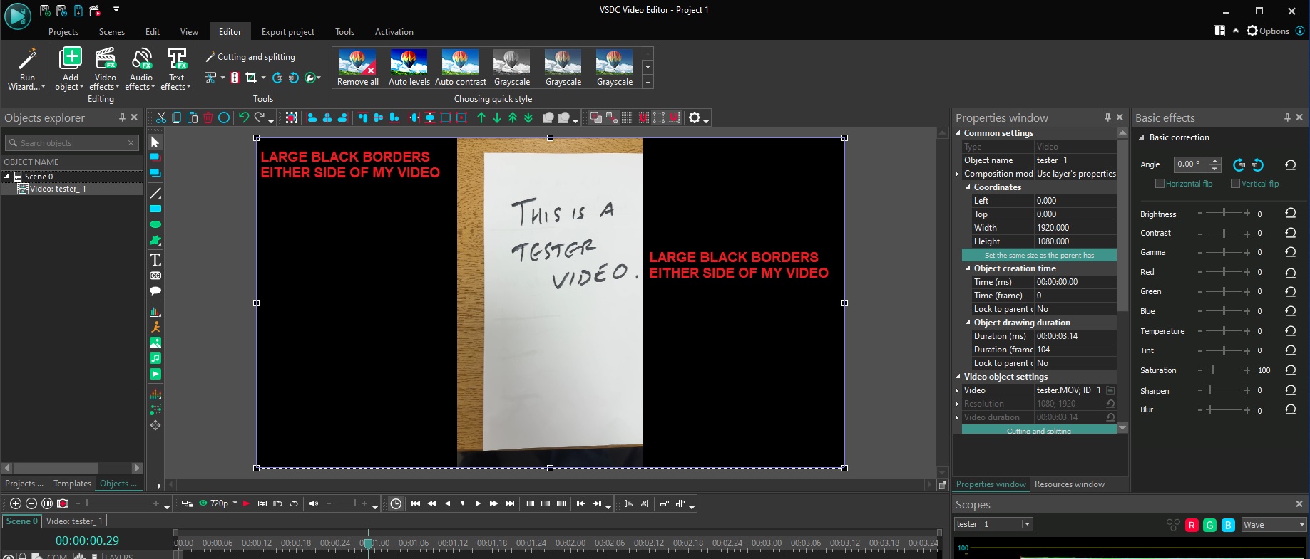 So, video clip 1 is a video of me talking about fishing. That video was filmed on my Iphone 13. I then downloaded that video from my Iphone 13 to my PC desktop. I then imported that video from my desktop into VSDC. However, every time I import one of my own videos into VSDC I end up with Black borders either side of my video (see attached image). If I stretch the video out to fill the screen it doesn't look right. So, you can see that I have Black Borders at the sides of my videos (from my phone) but it doesn't happen with other videos (that I have downloaded etc)
