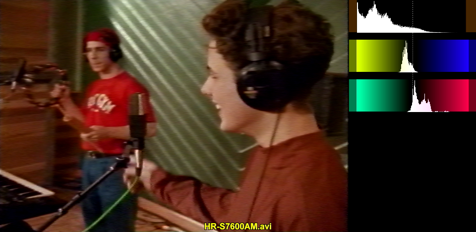 Here is two 30 seconds lossless AVI samples of the same section of a VHS tape played back on both machines in analog mode via S-Video, Both set to "Edit" mode, The 7600AM B.E.S.T is set to on, The equivalent "Video Calibration" is set to on for the HM-DH5U, The 7600AM has a line TBC on, but the HM-DH5U don't have a setting for it, I guess it is automatically on, it does have video stabilizer but the manual states it's for EP tapes only.