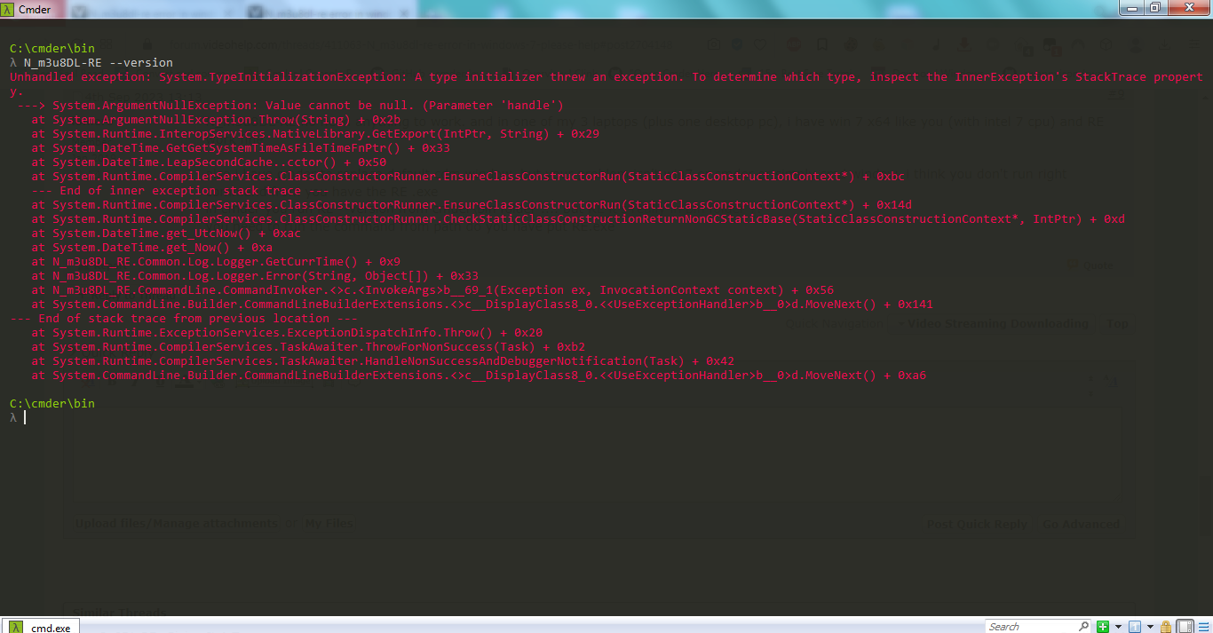 N_m3u8DL-RE no need anything to work. and in one of my 3 laptops (plus one desktop pc), i have win 7 x64 like you (with intel 7 cpu) and RE work fine