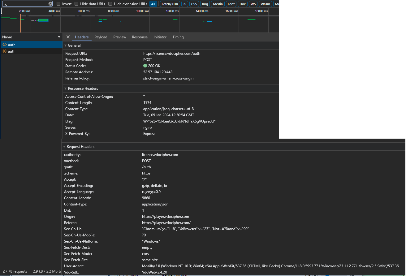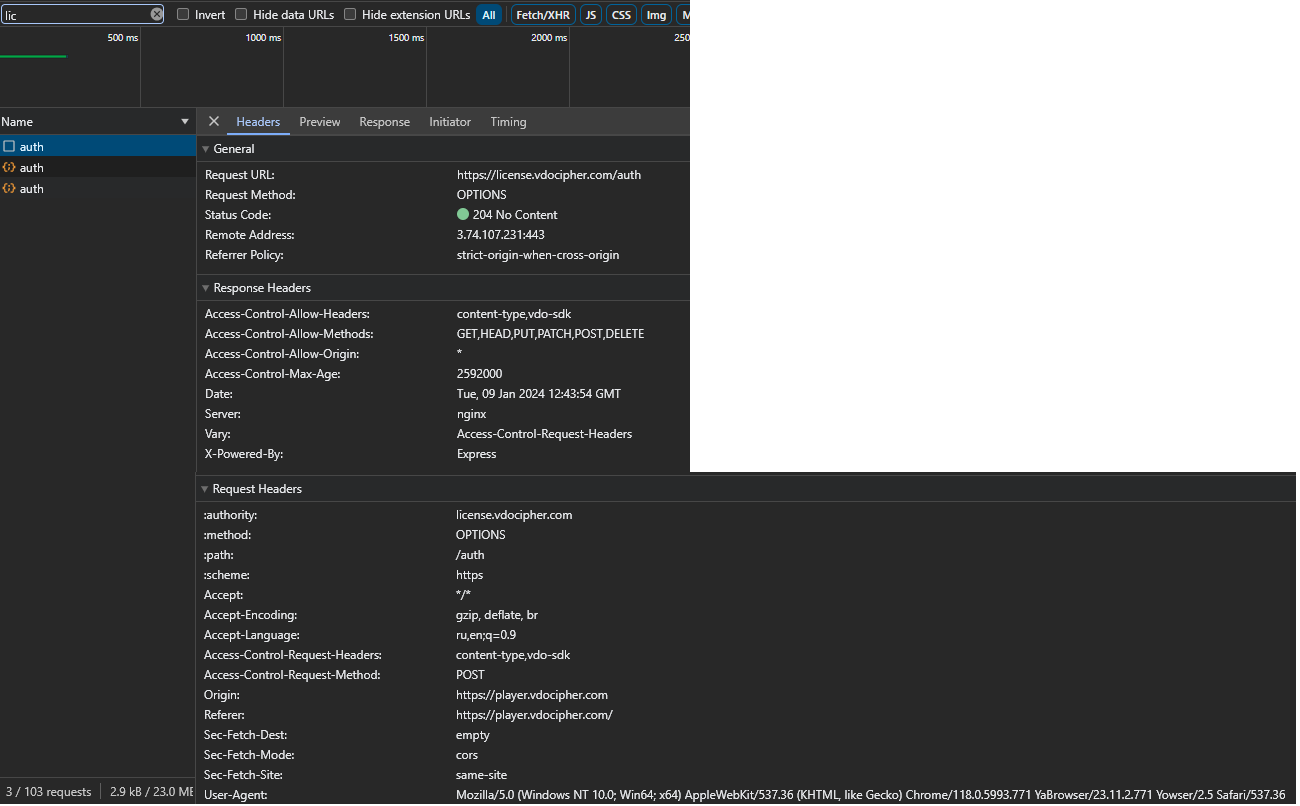 and this license url: https://license.vdocipher.com/auth it gives me a 403 forbidden. You should copy and paste the request headers of https://license.vdocipher.com/auth as there might be an authorization token there.Code:AAAAUnBzc2gAAAAA7e+LqXnWSs6jyCfc1R0h7QAAADIiKnZkb2NpcGhlcjplMmQ3MjdkMmQ2Mzk0Njc1OTk5ODdkYjc0NDM4NTBkOUjj3JWbBg==