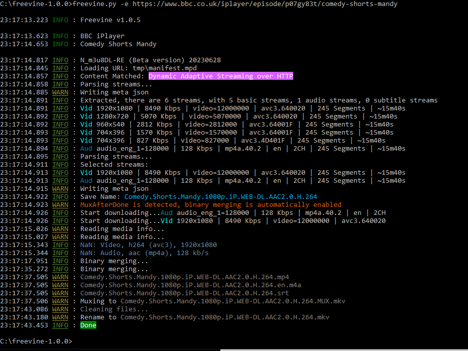 C:\freevine-1.0.0>freevine.py -e https://www.bbc.co.uk/iplayer/episode/p07gy83t/comedy-shorts-mandy