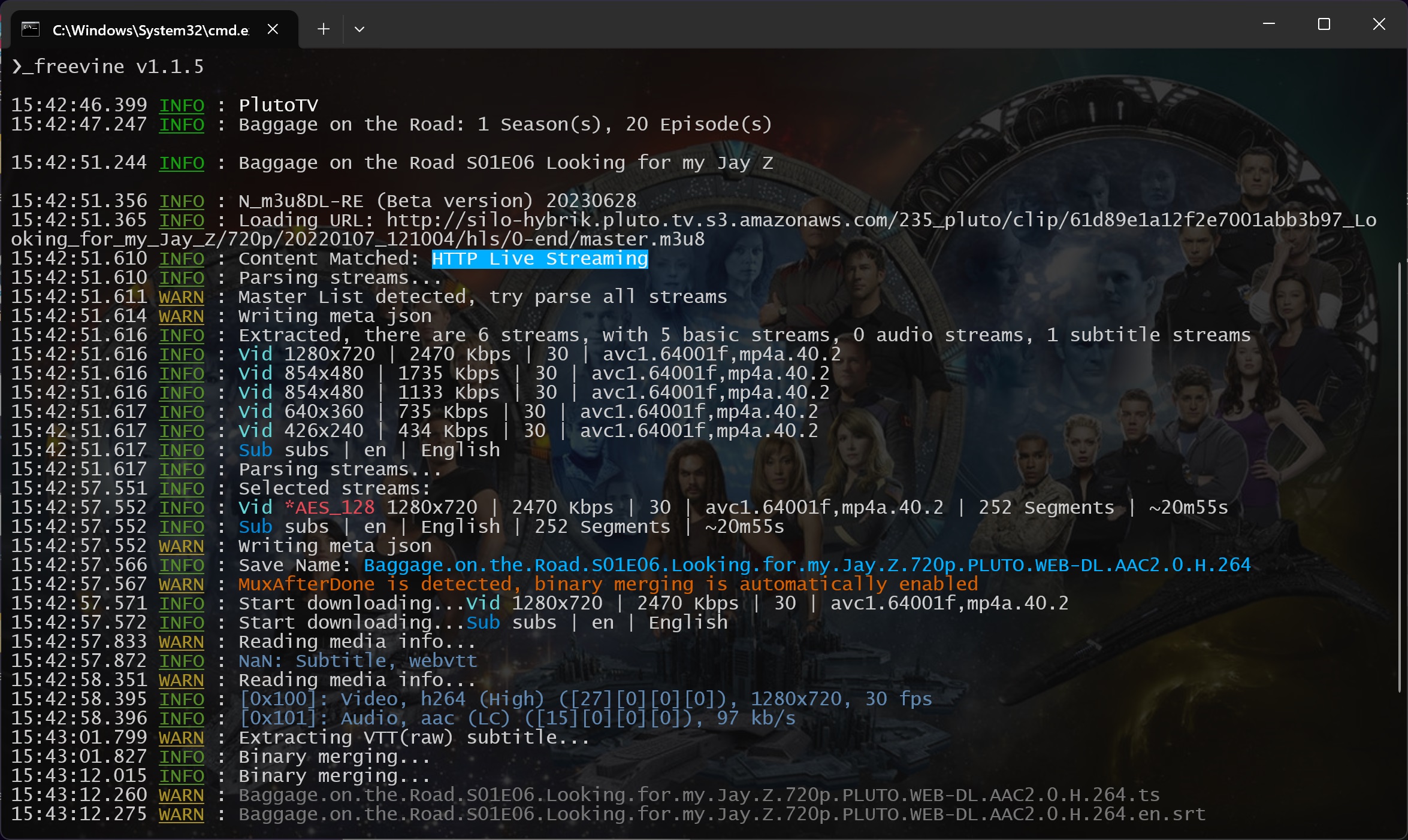 python freevine.py get --episode s01e06 https://pluto.tv/en/on-demand/series/baggage-on-the-road/details