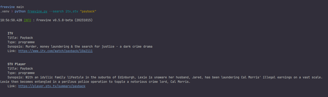 Also, as described, 'py freevine.py --help' is your (big) friend.