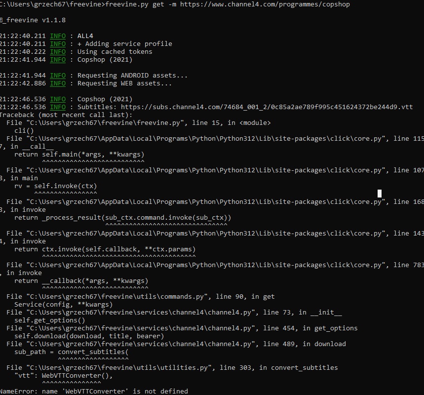 Code:py freevine.py profile --username "your@email.address" --password "Pa$$word" --service "ALL4"