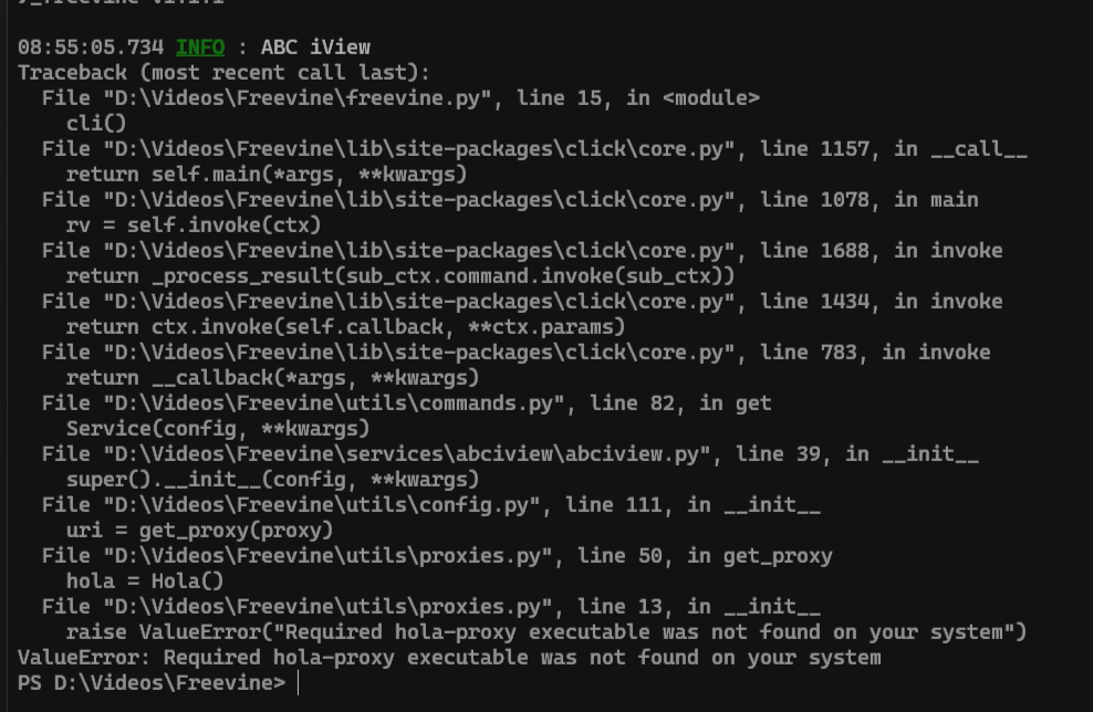 I tried pulling the Hola git into the Freevine directory and I tried downloading hola-proxy.windows-amd64.exe but wasn't really sure where to put it so I ended up with: