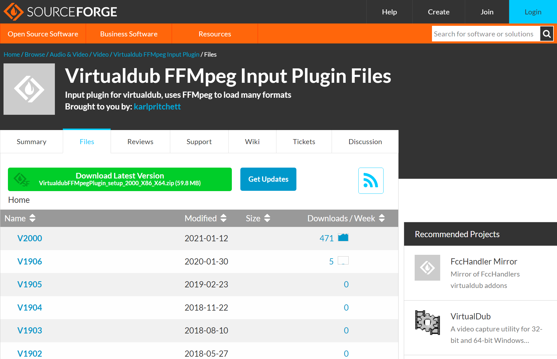1. It was removed in June 2022: http://web.archive.org/web/20220610171440/https://sourceforge.net/projects/virtualdubf...tplugin/files/