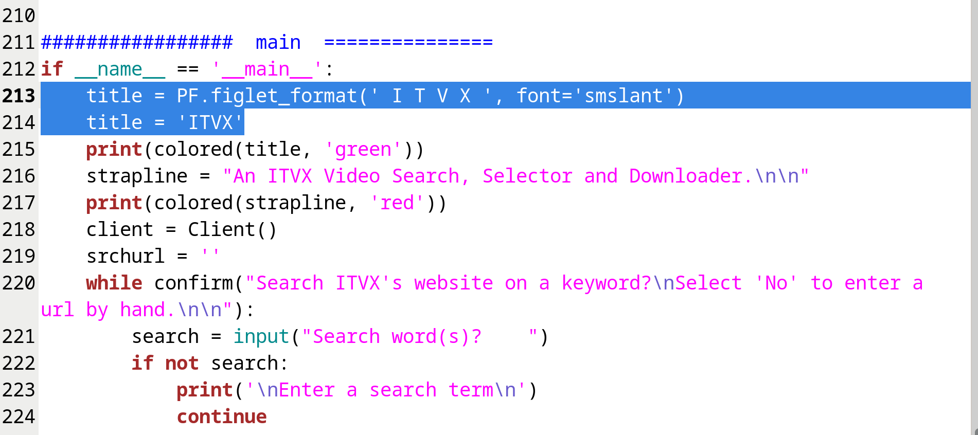 removeaddCode:title = PF.figlet_format(' I T V X ', font='smslant'I have tested the code; it runs on windows 10 and 11.Code:title = 'ITVX'