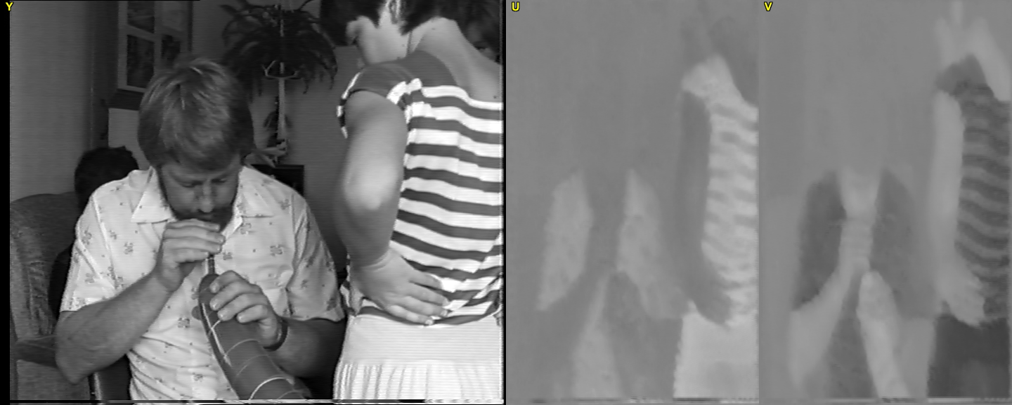 I'm actually grateful you pointed out the colour and the highlights, because I was too busy with all the jagged edges on the right - which to me are far worse than the colour issues - and that's saying something cause I hate colour issues and your colour smearing example is the kind of difference I was expecting going from 4:2:0 to 4:2:2 due to low resolution of VHS and well the rest you already know I guess.