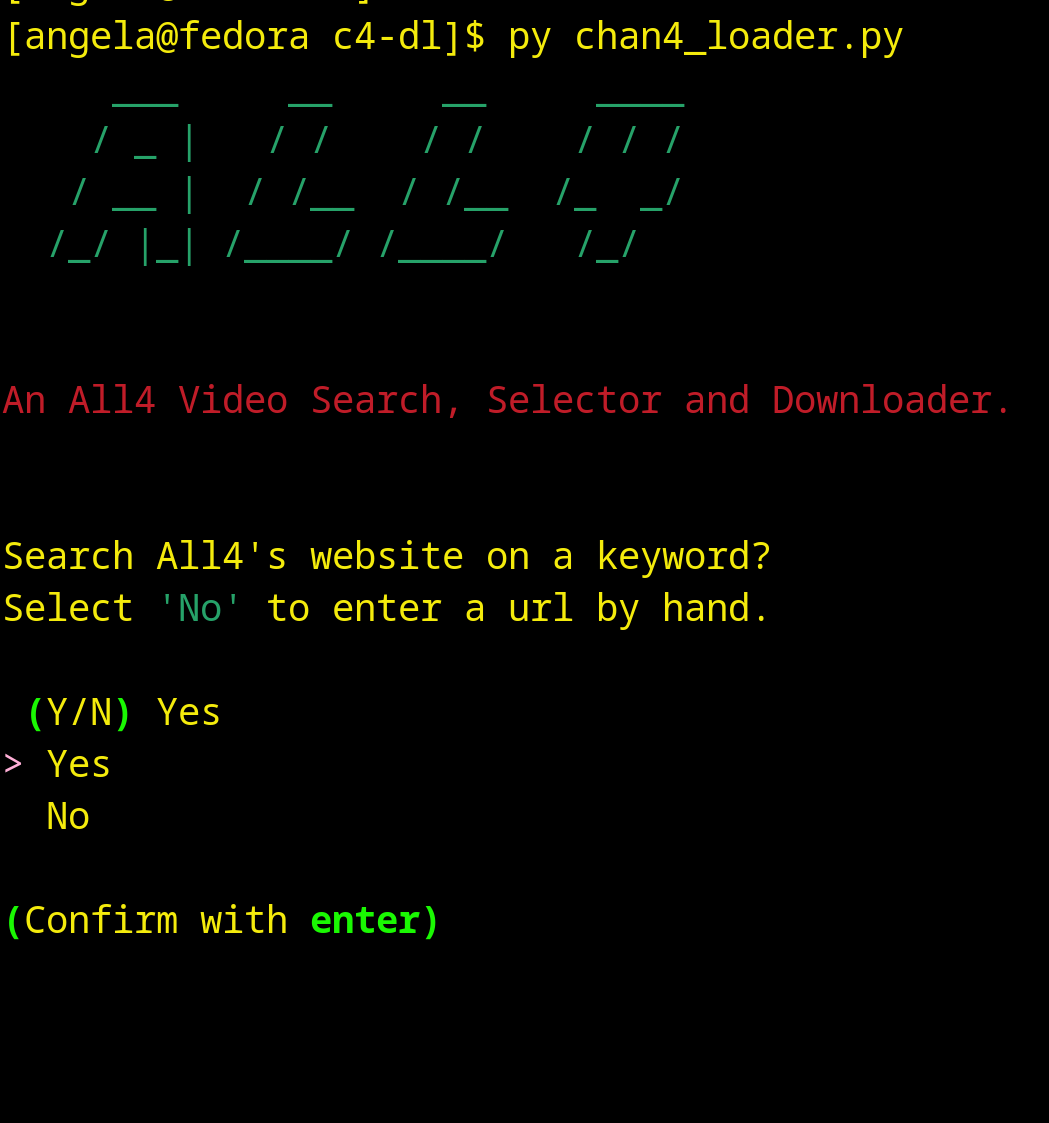 As usual there are two files. chan4_loader.py and C4.py. C4.py will work on its own as a single episode downloader.