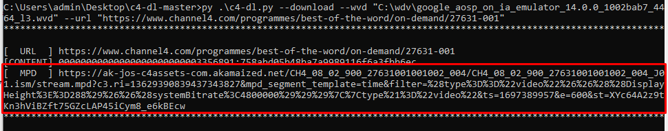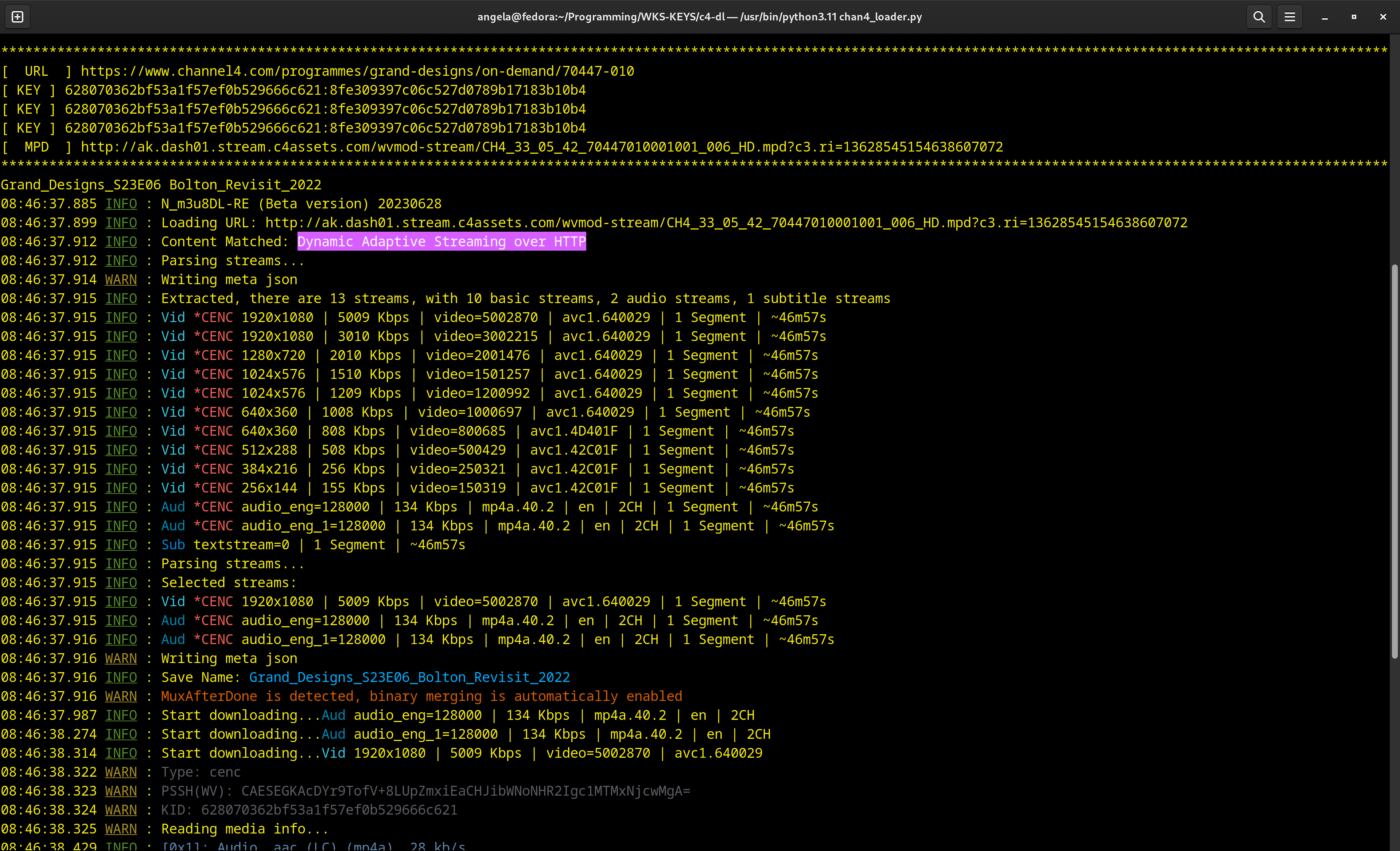 Re audio tracks. You should tell All4. Sometimes the audio-description track is labelled as the prime audio. Calling tracks by id does not work for all downloads on All4 unfortunately.Noob Starter Pack. Just download every Widevine mpd! Not kidding!.
