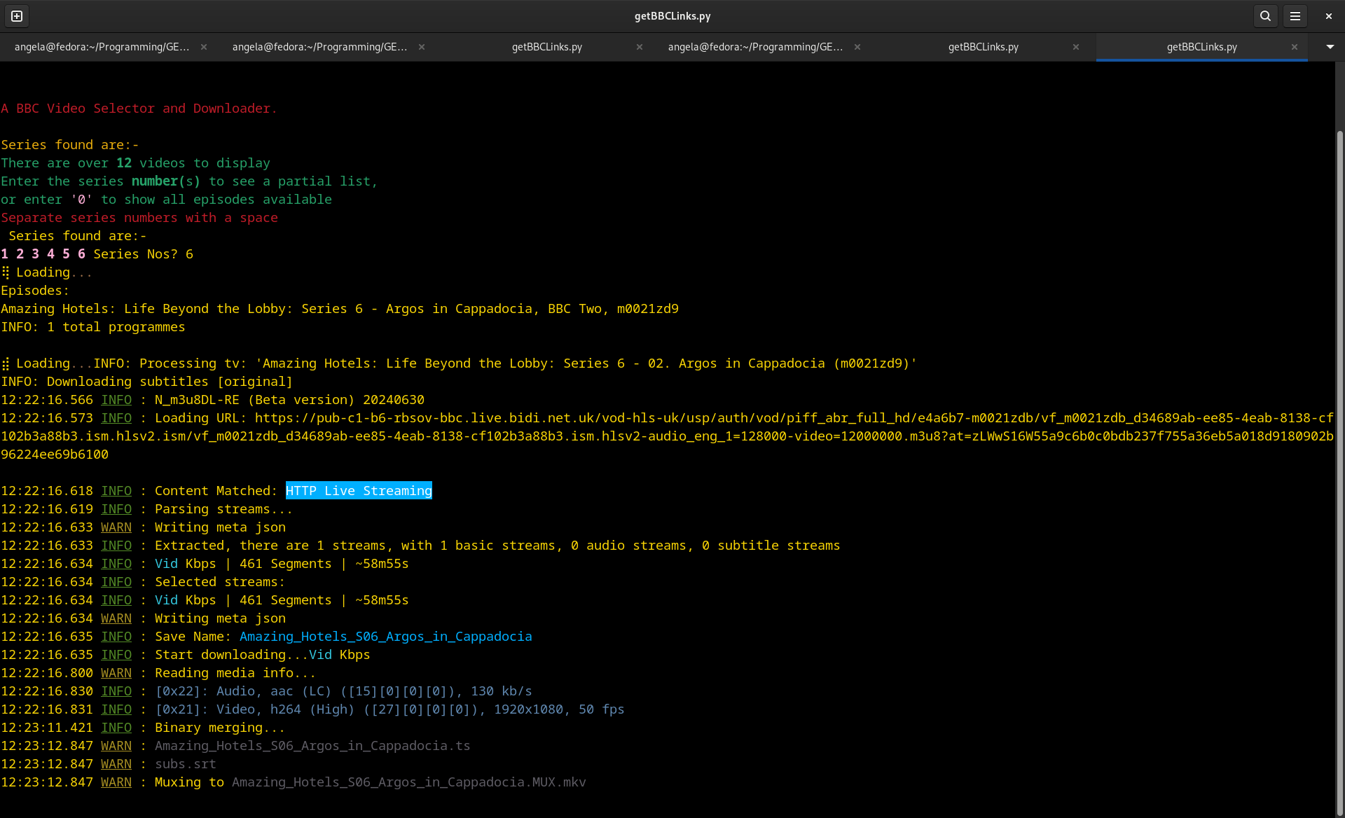 A_n_g_e_l_a - I have been using and enjoying this for a while now. Thank you! I have it up and running no issues on one desktop, now I installed on a new desktop, same version of python, same everything. I however have an issue with MY5. I can DL from all other sites within UK-FTA but MY5. "Update MY5" was done, but I think this is something with my local machine I just cannot figure out. That said. The keys and .mpd and everything that is spit out by UK-FTA I can copy/paste and use my own string to download with N_m3u8DL-RE it works. So that is why I am confused and writing this now. So for example, The Teacher -