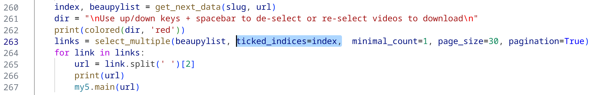 Yes that's what I mean too! If you know you only need one video you could copy the url from the screen list; ctrl+c out of the script; re-run menu.py; select single.