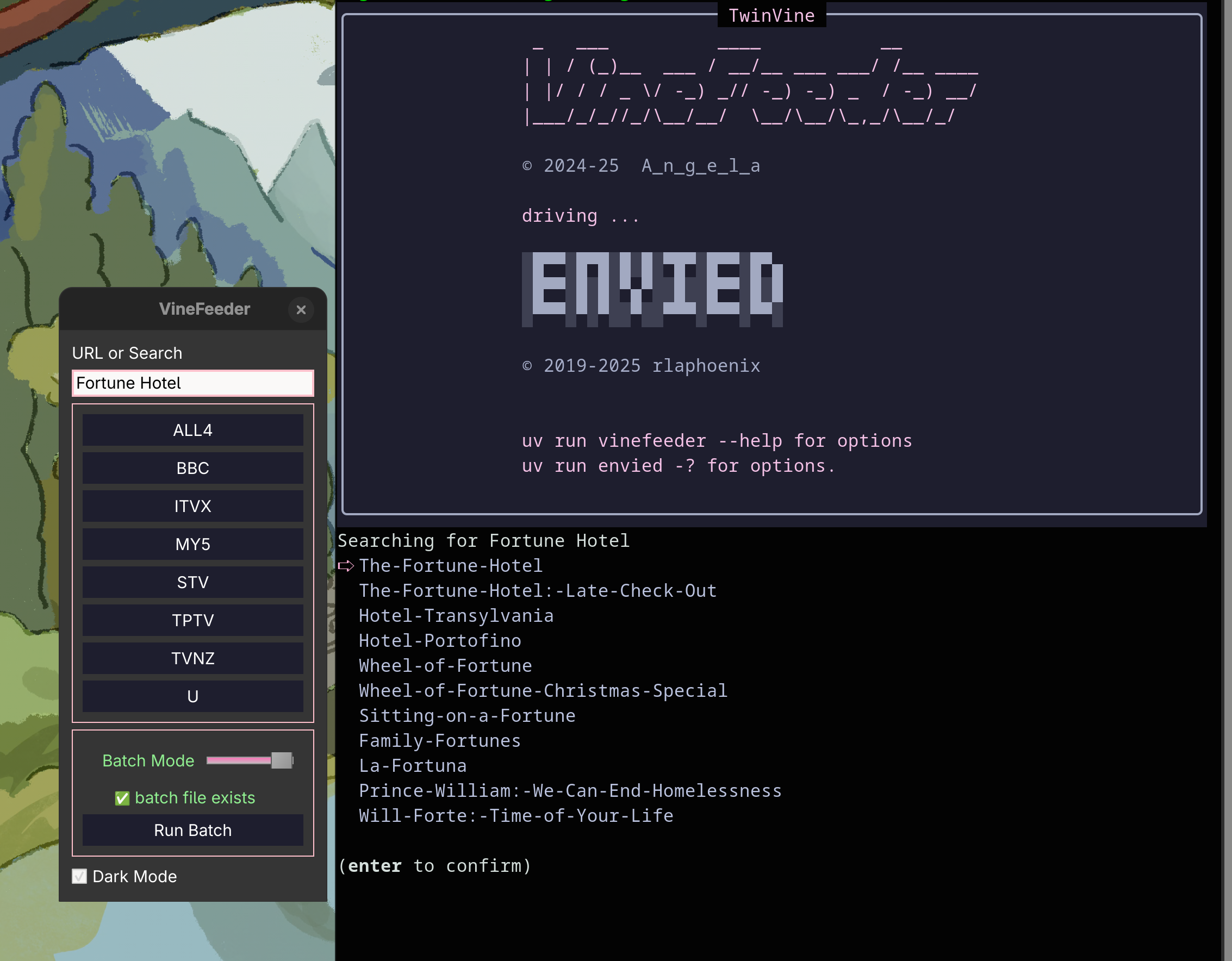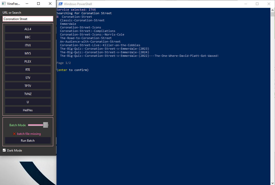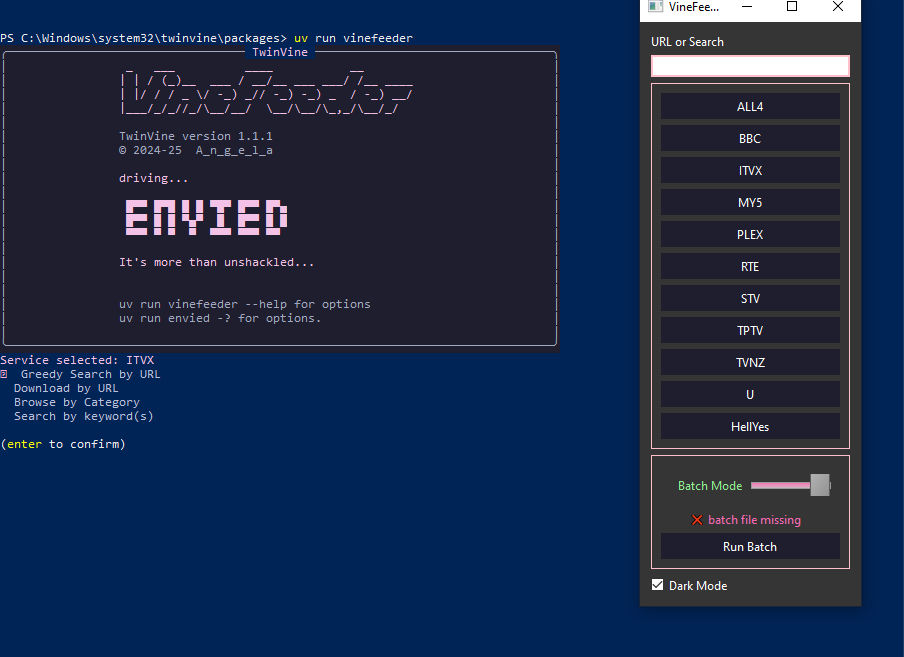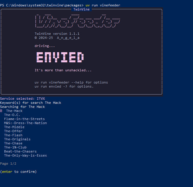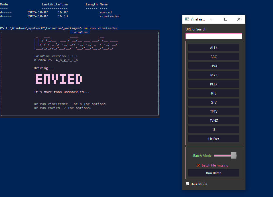 For those whom have grown to like, and even expect, a GUI interface I prepared VineFeeder. It needs a separate install and it could call Devine for all the UK-FTA channels from a GUI. That is still a good solution - as VineFeeder on its own can be set to call Devine or Unshackle or Envied. But it needs a system wide install - a uv tool install for unshackle and envied. That presents a barrier for some users.