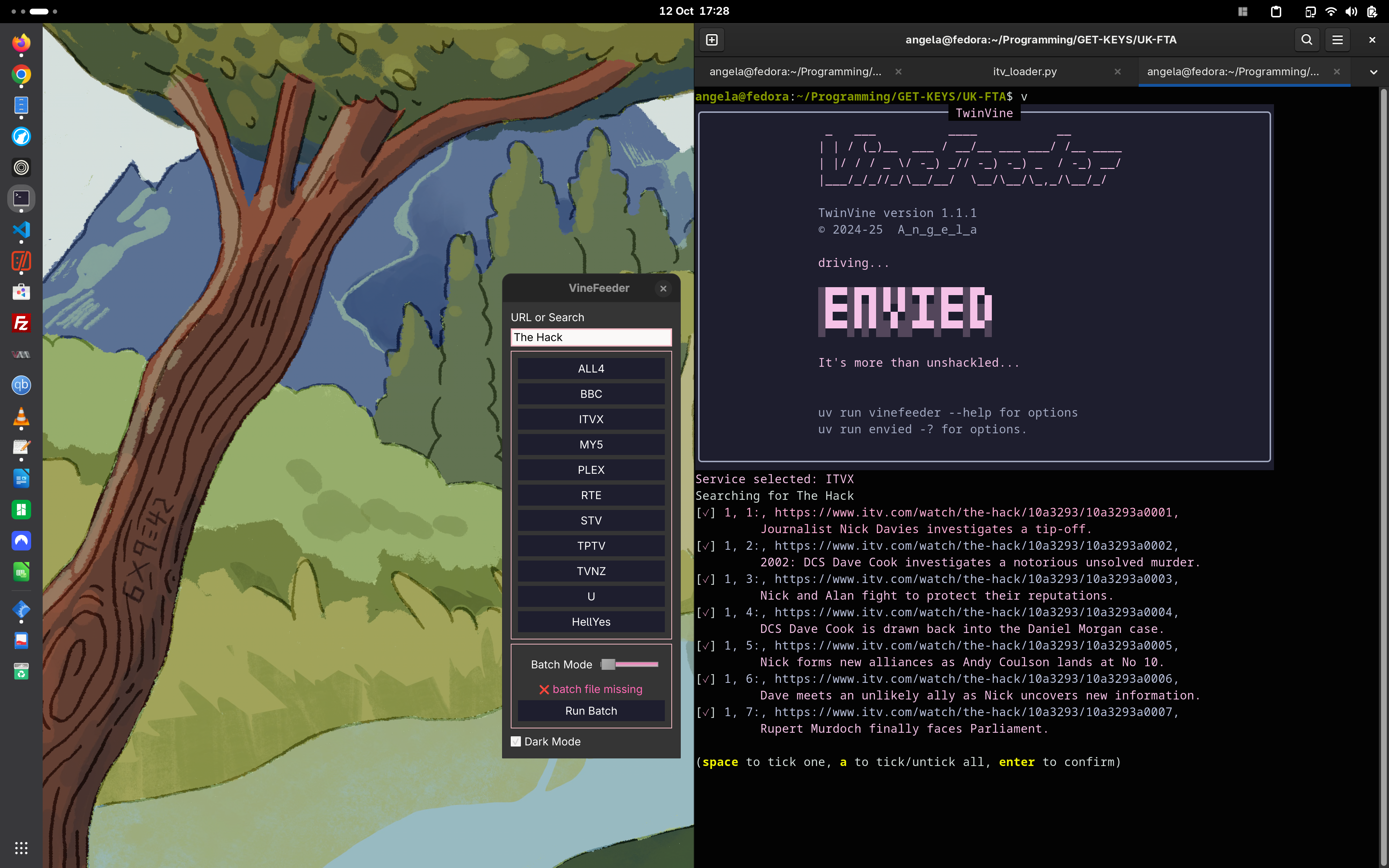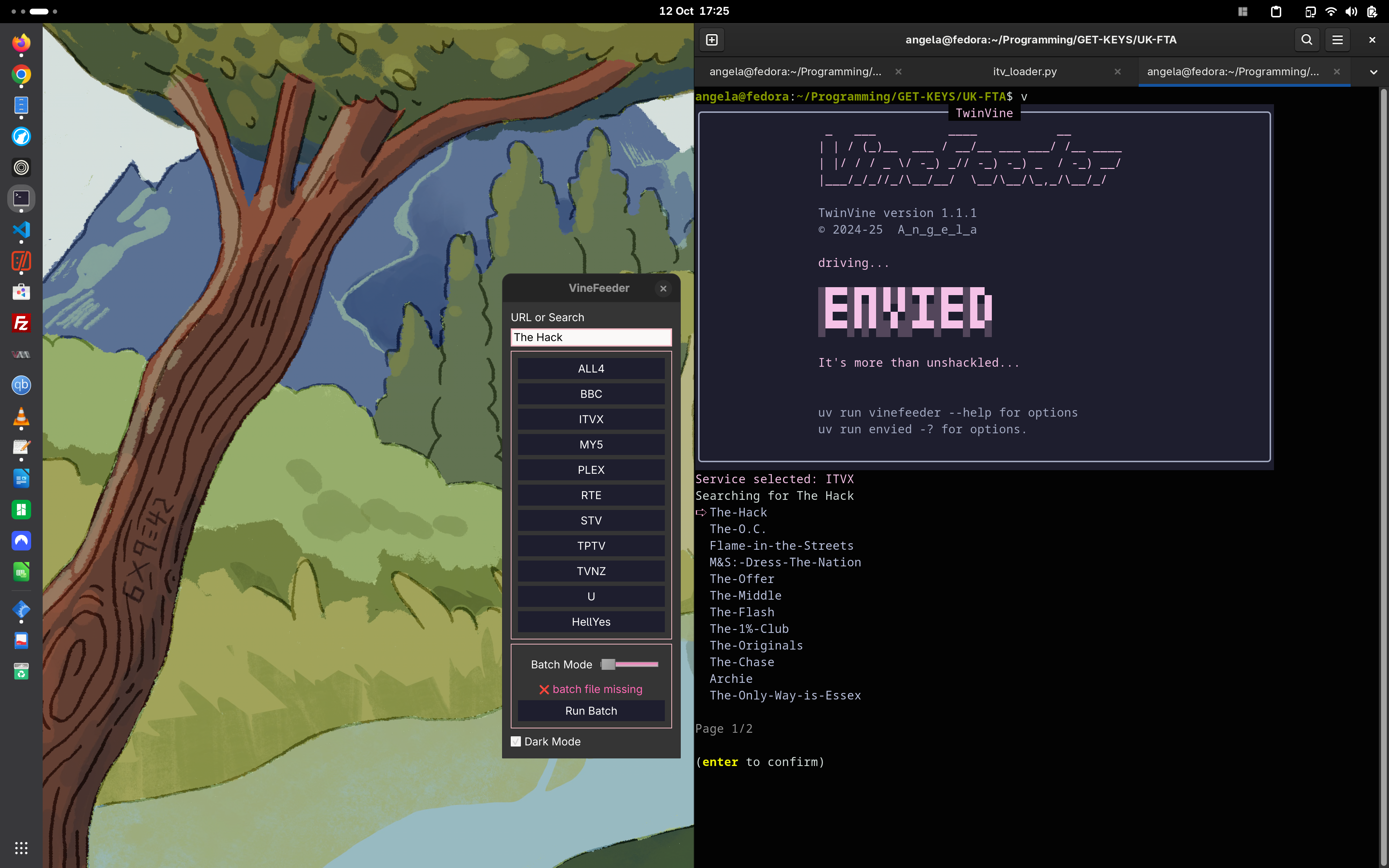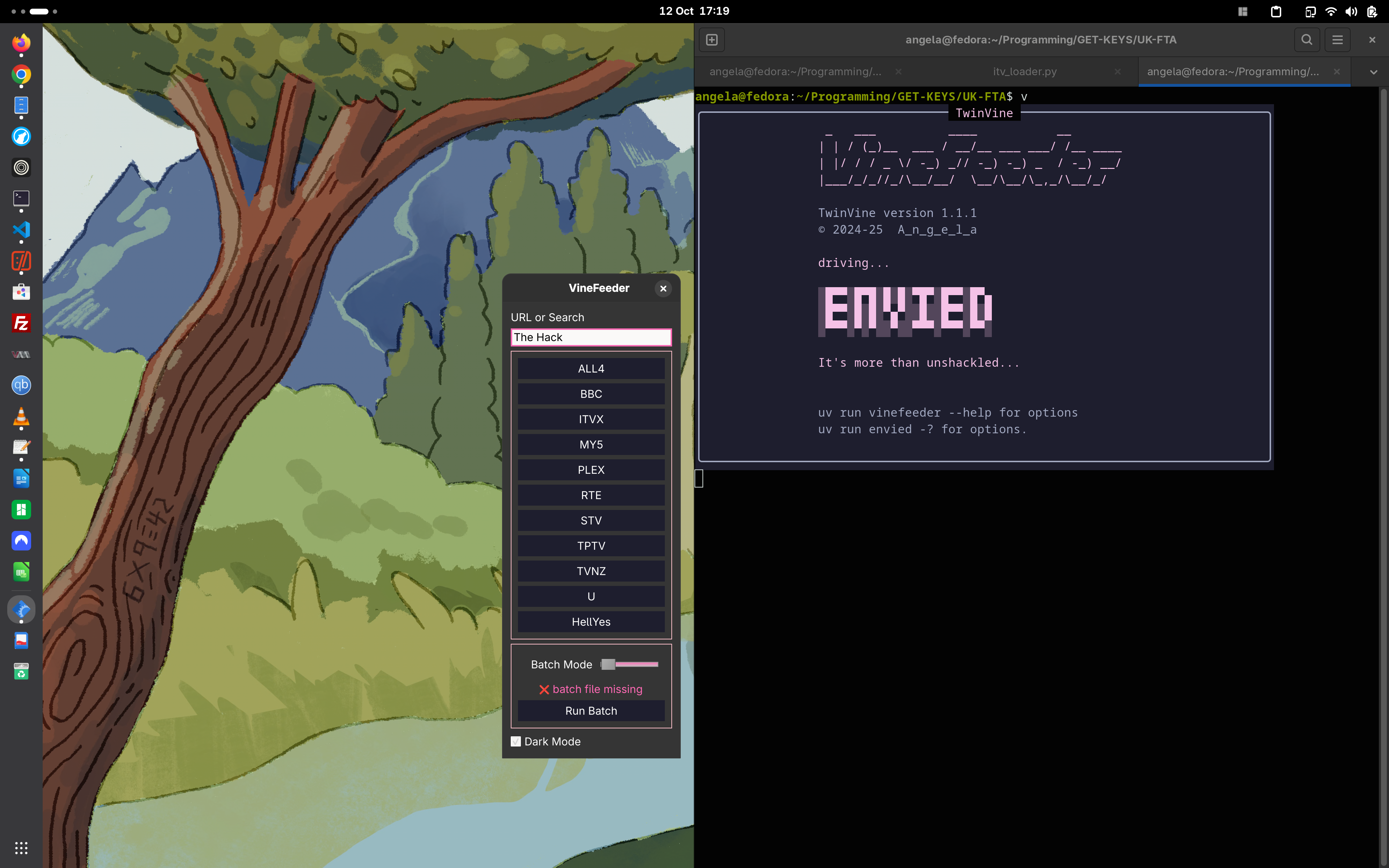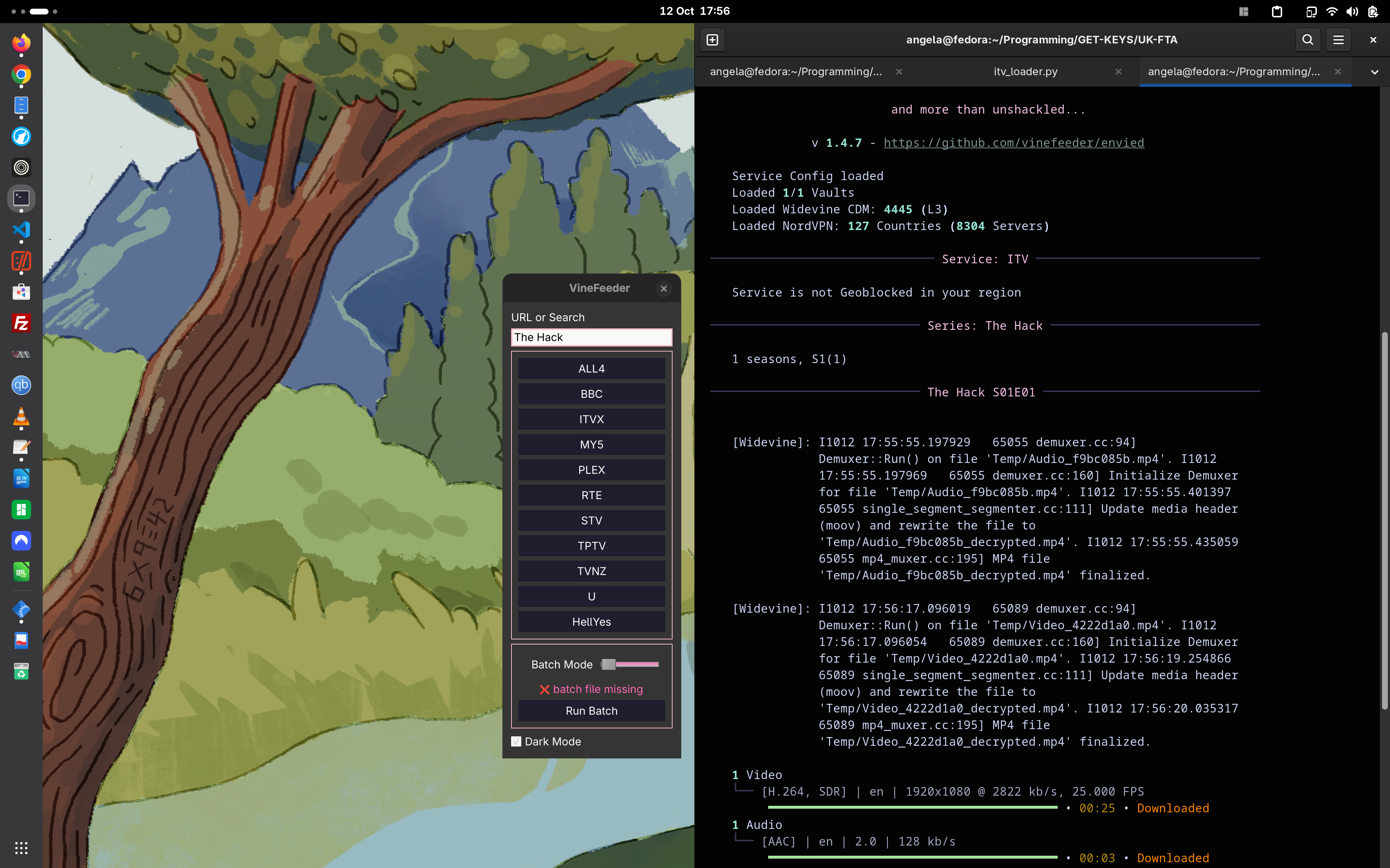For those whom have grown to like, and even expect, a GUI interface I prepared VineFeeder. It needs a separate install and it could call Devine for all the UK-FTA channels from a GUI. That is still a good solution - as VineFeeder on its own can be set to call Devine or Unshackle or Envied. But it needs a system wide install - a uv tool install for unshackle and envied. That presents a barrier for some users.