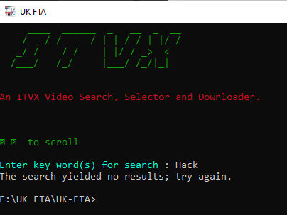 With the caret on the first option (correct search result), press Enter. After a few seconds I get the message : “The search yielded no results; try again.” and the UK-FTA closes: