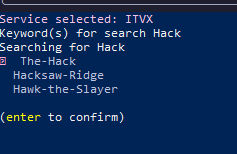 Using the mouse click on ITVX in the GUI and in the PowerShell window I get the search options.