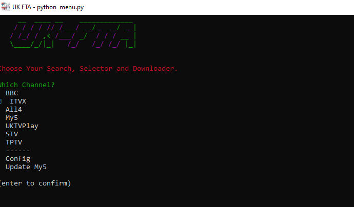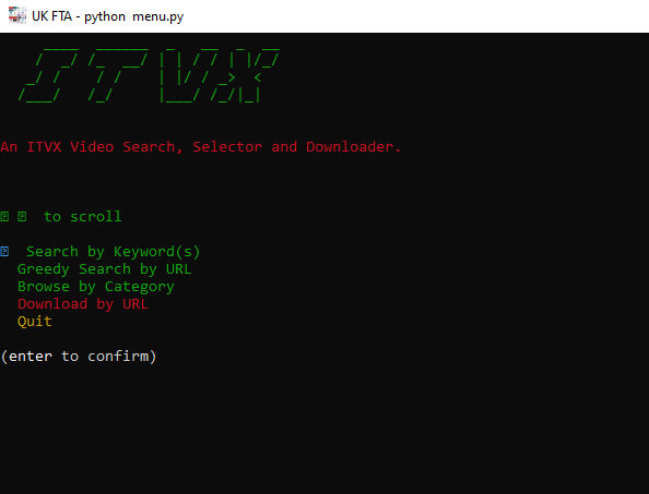 Start UK-FTA and select ITVX from the menu using the arrow keys and then Enter