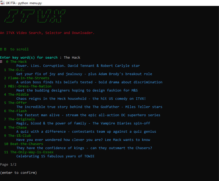 Using the arrow keys, move down to select “Search by keyword(s)”. Enter the search string The Hack, and the search results are displayed as follows:
