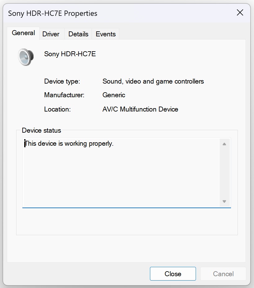 Unable to import DV off Sony HDR-HC9 on Windows 10 20H2 build 19042.1165
