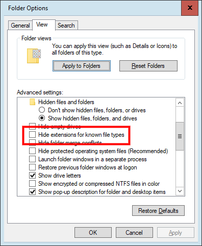 That allows you to see the real extension. For example a file named VIDEO.MOV.MKV will show up as VIDEO.MOV in Explorer if that option is enabled (the default setting). So you may think it's a MOV file even though it's an MKV file. When you double click on it the file will open with the program associated with MKV files, not the program associated with MOV files.