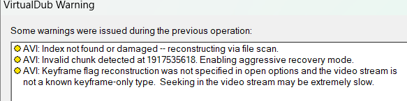 The "repair OK" happens but Virtual Dub opens it and it's just a black square.