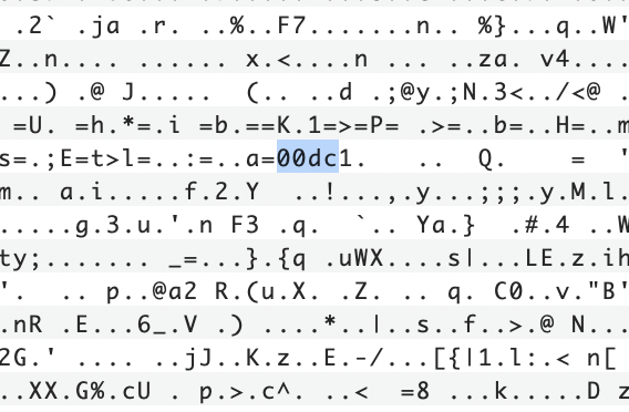 Yeah, there are a few. Here are some.If you look at the file in HEX editor, can you spot at least a few occurrences of "00dc" or "00db" character groups? (see example in screenshot attached)