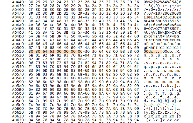 There were at least some such occurrences in your previous screenshots (e.g. https://forum.videohelp.com/attachment.php?attachmentid=74899). I meant hex bytes sequence, not characters -