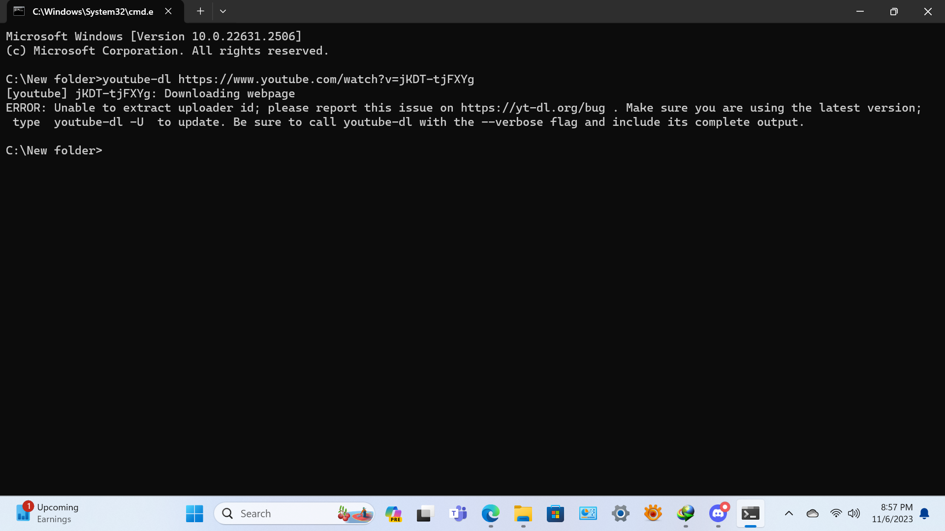 No longer able to download videos with youtube-dl.exe