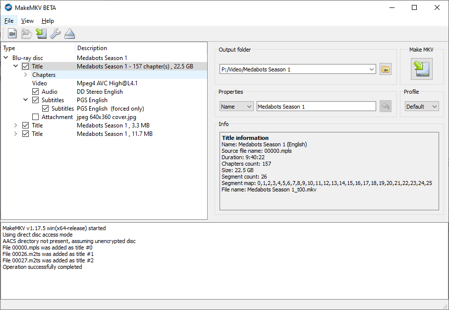 It would be easy to just copy the .m2ts videos and do the remux on my own, but I'm worried about not being able to get the chapters separately for each episode and as you know, the chapters are not included in the .m2ts videos, it's in the .mpls files of PLAYLIST folder.