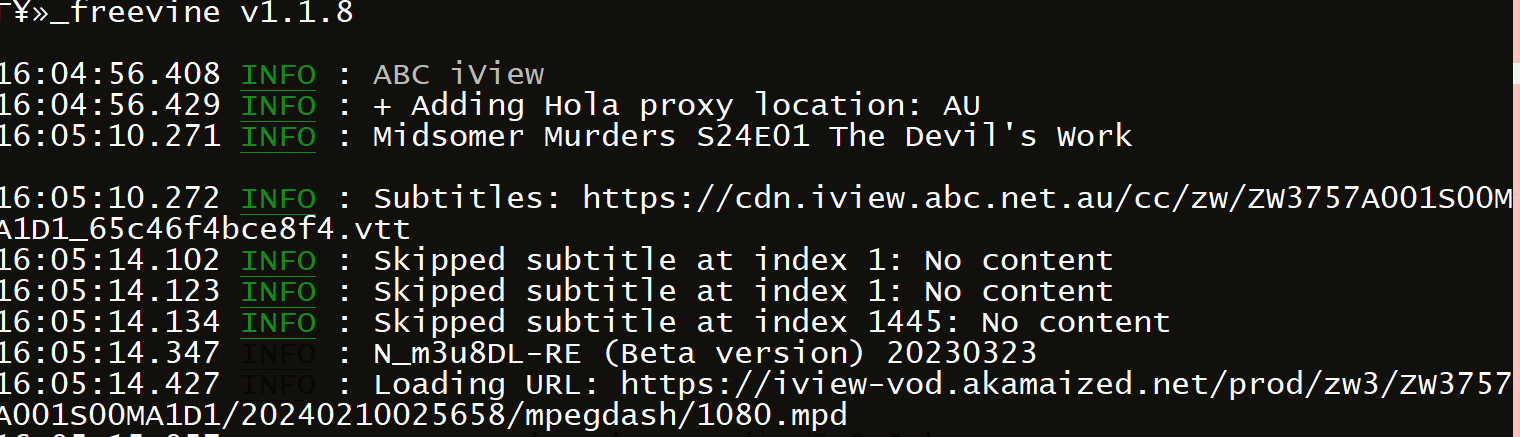 Works well with Freevine and vpn see what your saying about N_m3u8DL-RE.exe jumping off the screen