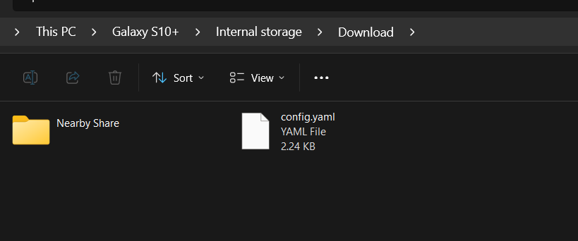 This puts the config.yaml card in the download directory on your phoneCode:cp config.yaml /sdcard/download/config.yaml