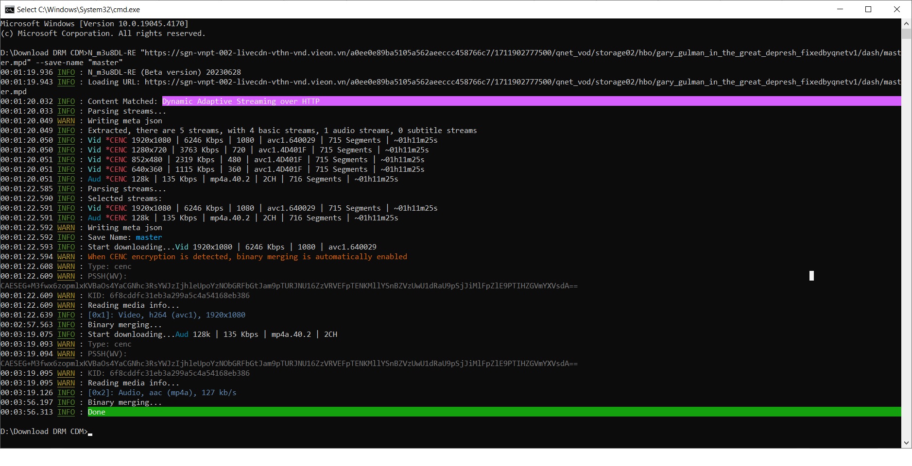 Code:N_m3u8DL-RE -M format=mkv --key 6f8cddfc31eb3a299a5c4a54168eb386:4c7516ab4f77e63e0e00c48a7024626c "https://sgn-vnpt-002-livecdn-vthn-vnd.vieon.vn/a0ee0e89ba5105a562aeeccc458766c7/1711902777500/qnet_vod/storage02/hbo/gary_gulman_in_the_great_depresh_fixedbyqnetv1/dash/master.mpd"