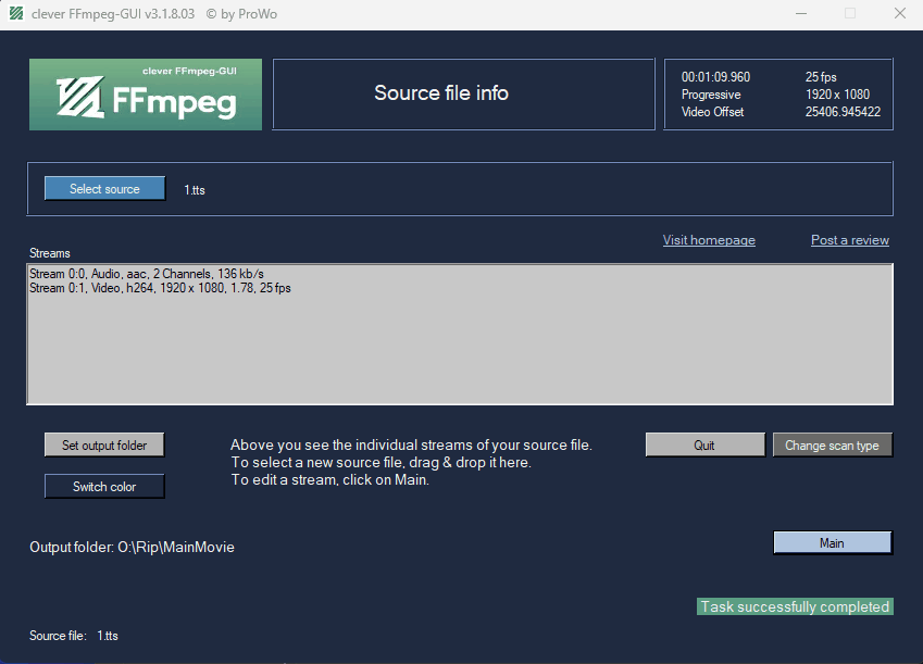 then this new mp4 video track is muxed with the existing audio track of the ts file into an mkv container.