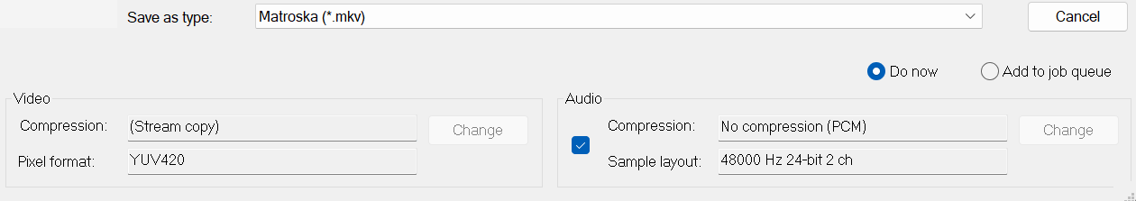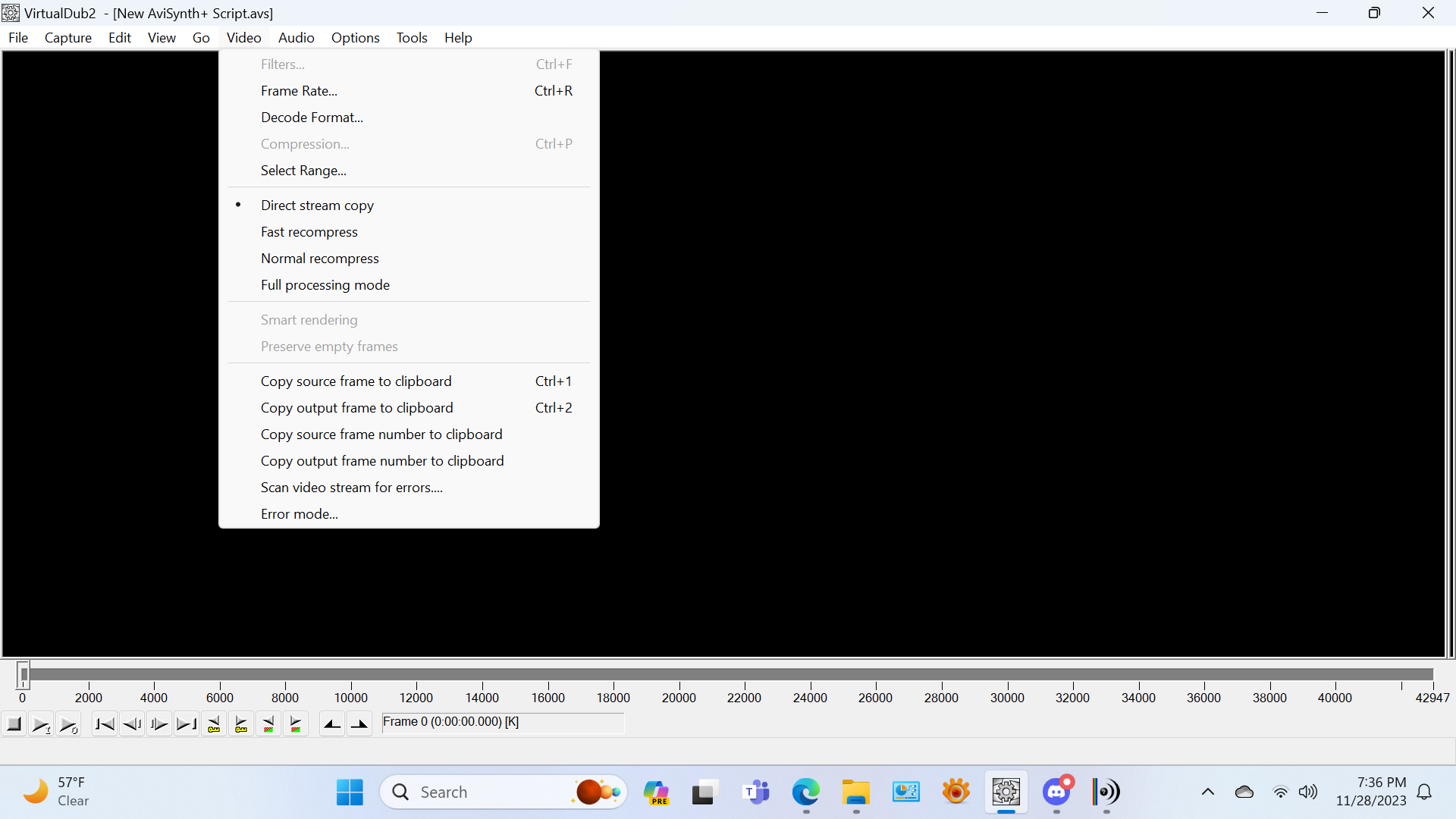 In other words, I should select a video compression format in VirtualDub2 because selecting Direct Stream Copy will only use the uncompressed video as the output.