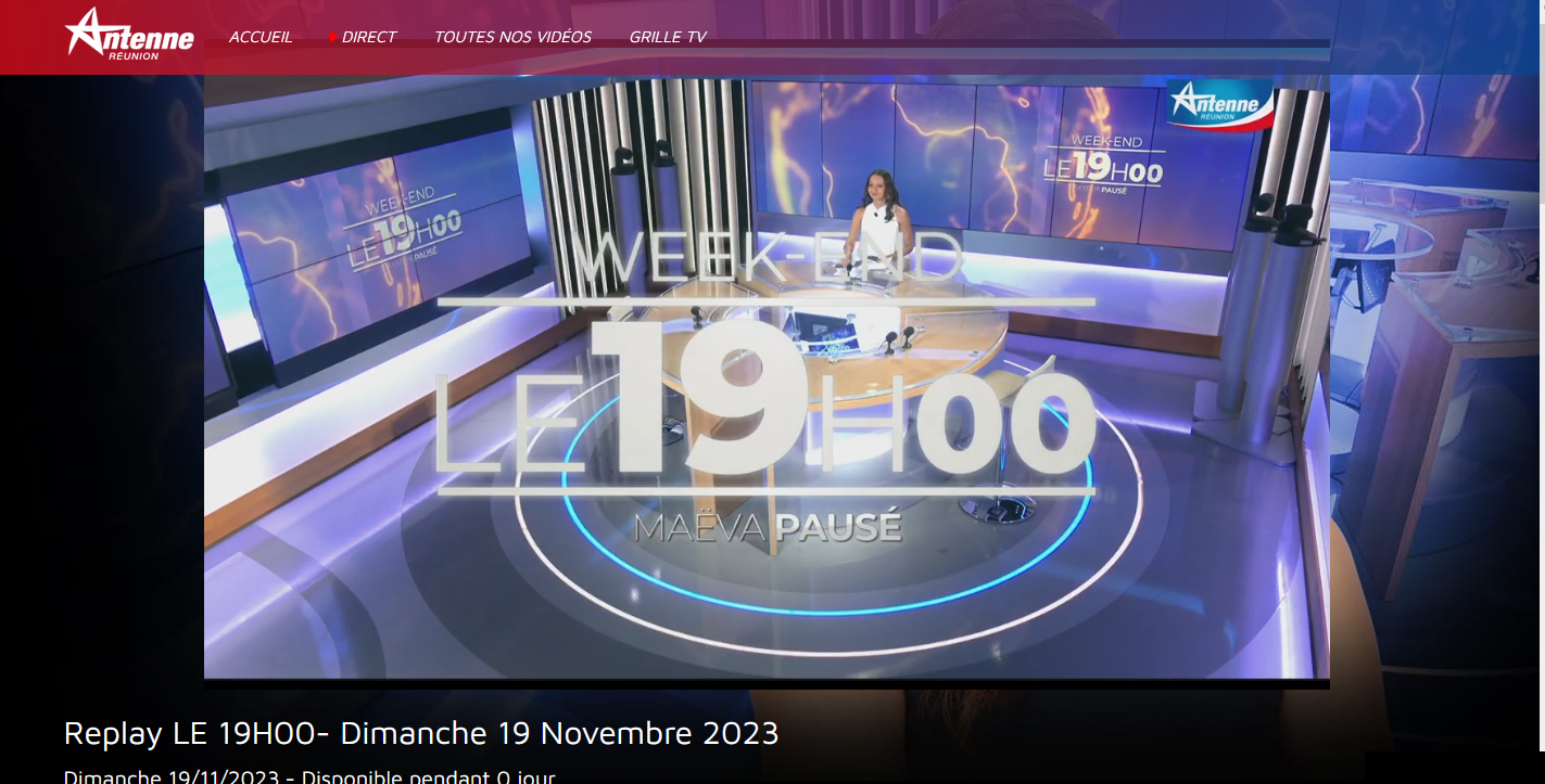 Maybe there is a problem with the link? If so, try this one but click on "VOIR PLUS" below and look for "Replay LE 19h00 - Dimanche 19 novembre 2023" : https://www.antennereunion.fr/infos-et-magazines/jt-week-end