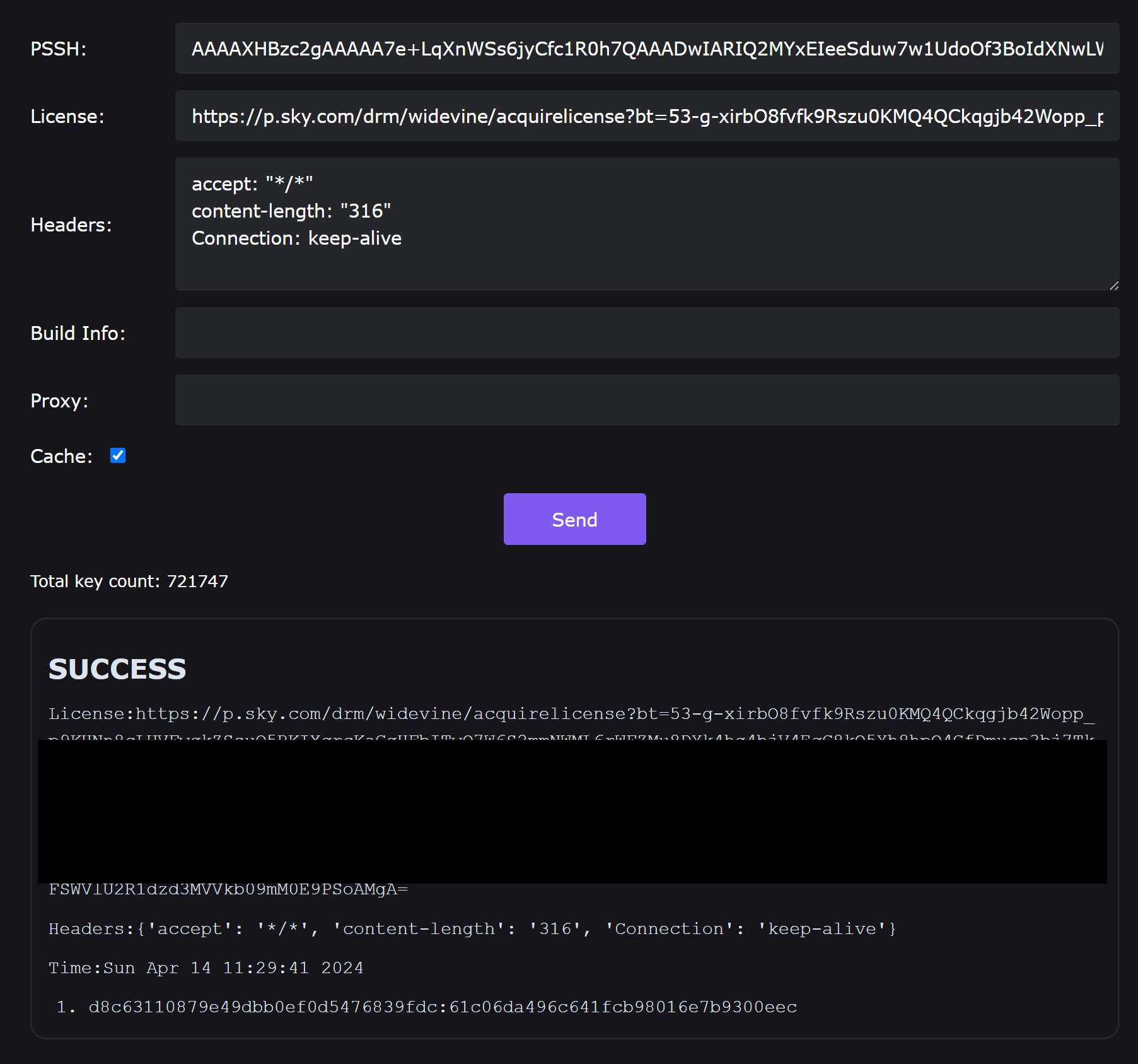 There are cached old keys in https://old.cdrm-project.com/,for example this is PSSH for Sky Cinema Unoand no keys are cached.Code:AAAAOHBzc2gAAAAA7e+LqXnWSs6jyCfc1R0h7QAAABgSEAA2IRzLe9nP2Z+4WR5n13JI49yVmwY=