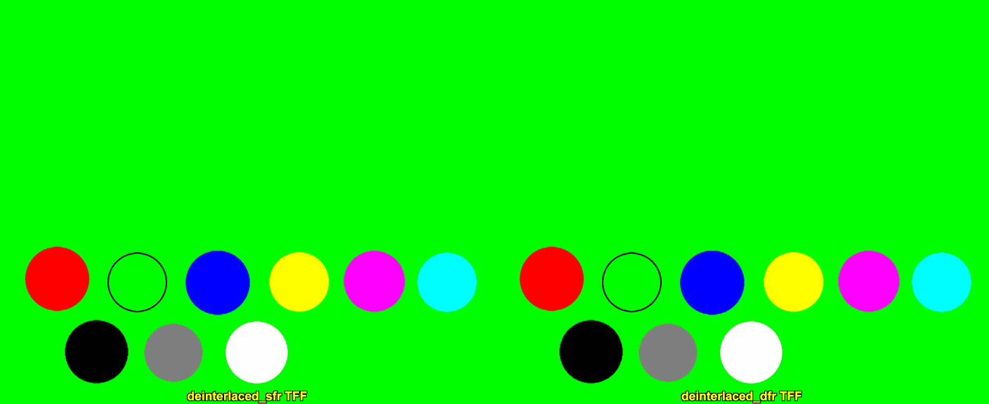 It is not really a deinterlacer test because the motion between fields is taken out of the equation, but it helps to understand the fields manipulations and color space conversions.