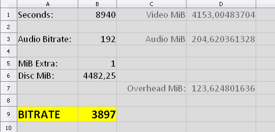 Let's find out what the bitrate will be using my good old spreadsheet:
