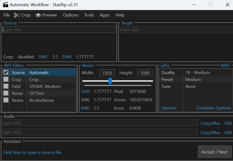I found Staxrip, a video-encoding gui that includes QTGMC. My problem is that I don't know what settings determine the speed without affecting the quality of the encoding. Can someone help? Or should I use something else like ffmpeg, avisynth, or virtualdub2?