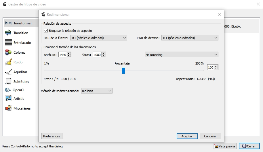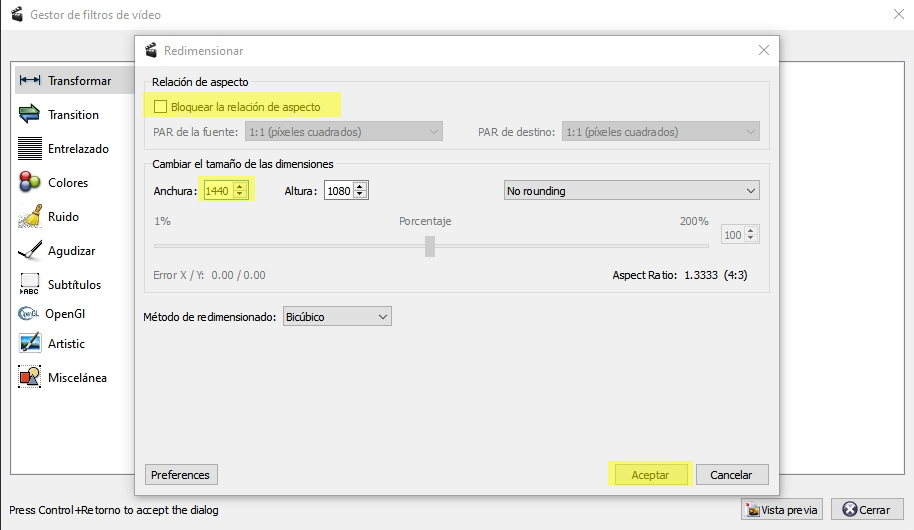 Yes and No. That will simply resize. The corrupted active video may still be corrupted but you will have more scope by un-checking the top box and then you can simply change the horizintal without changing the vertical