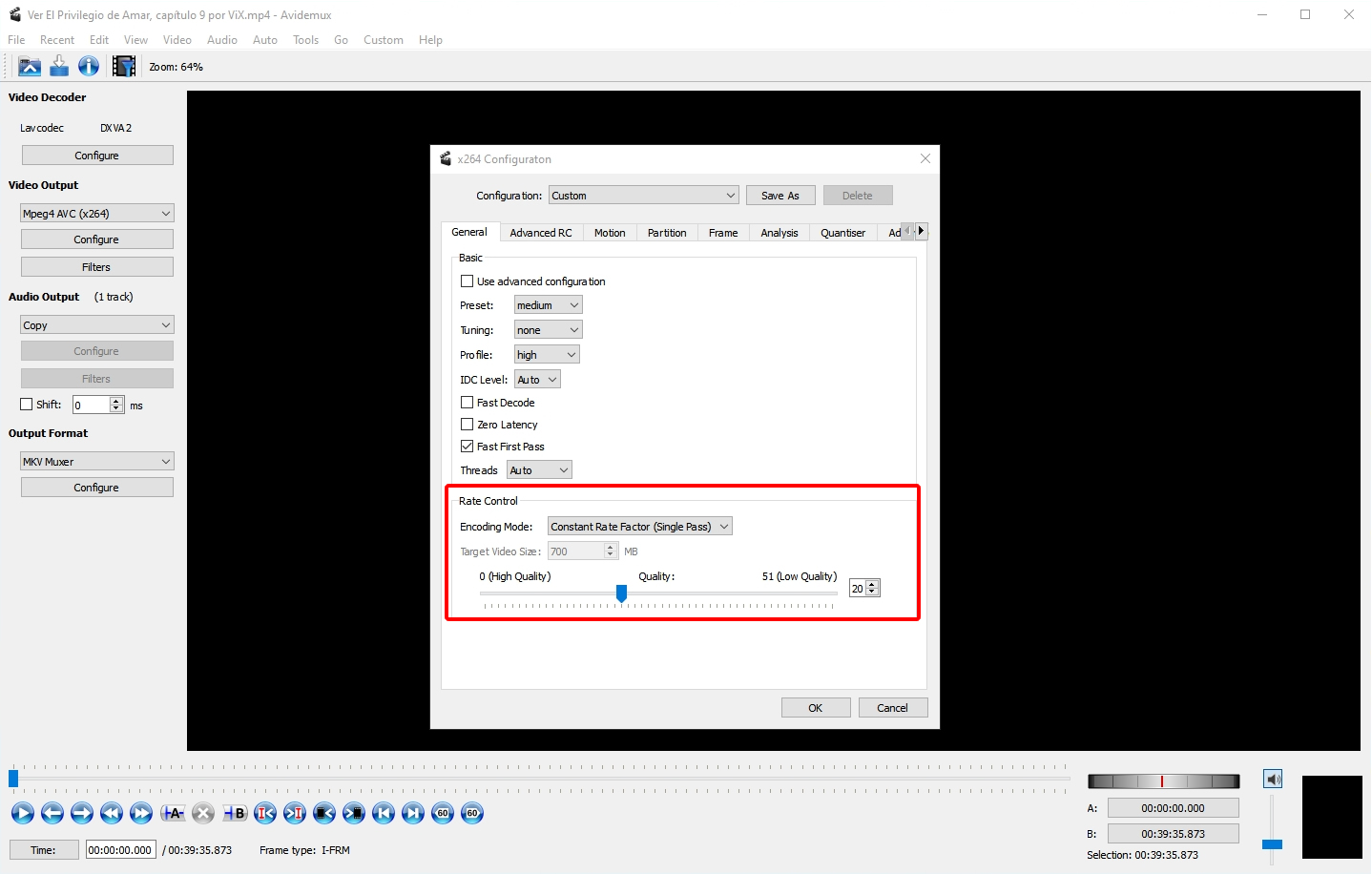 I wanted to know if something in the configuration of Avidemux which I use, is better to change.