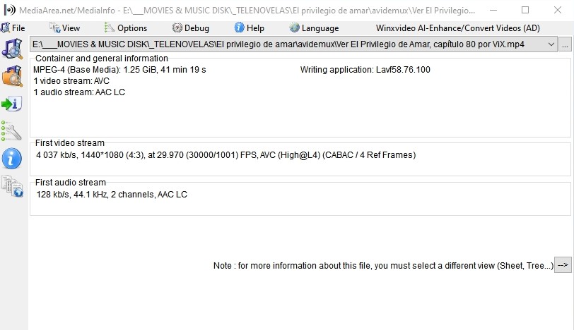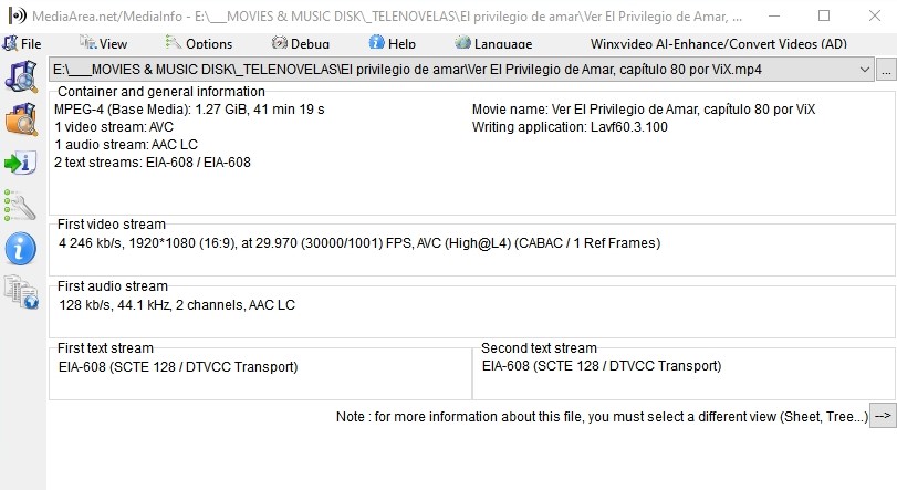 616 MB (!! wow !!) video file and overall bitrate 2020